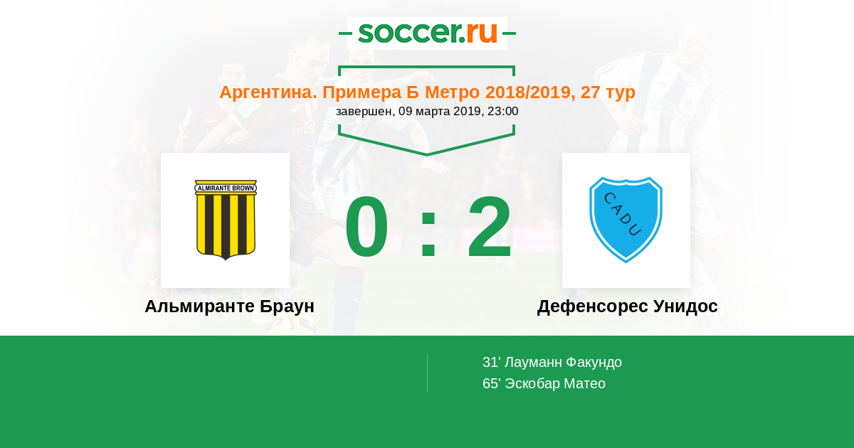Протокол матча Альмиранте Браун против Дефенсорес Унидос