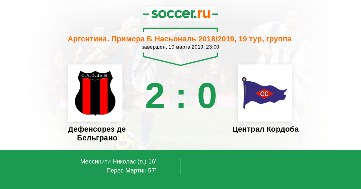 Протокол матча Дефенсорез де Бельграно против Централ Кордоба