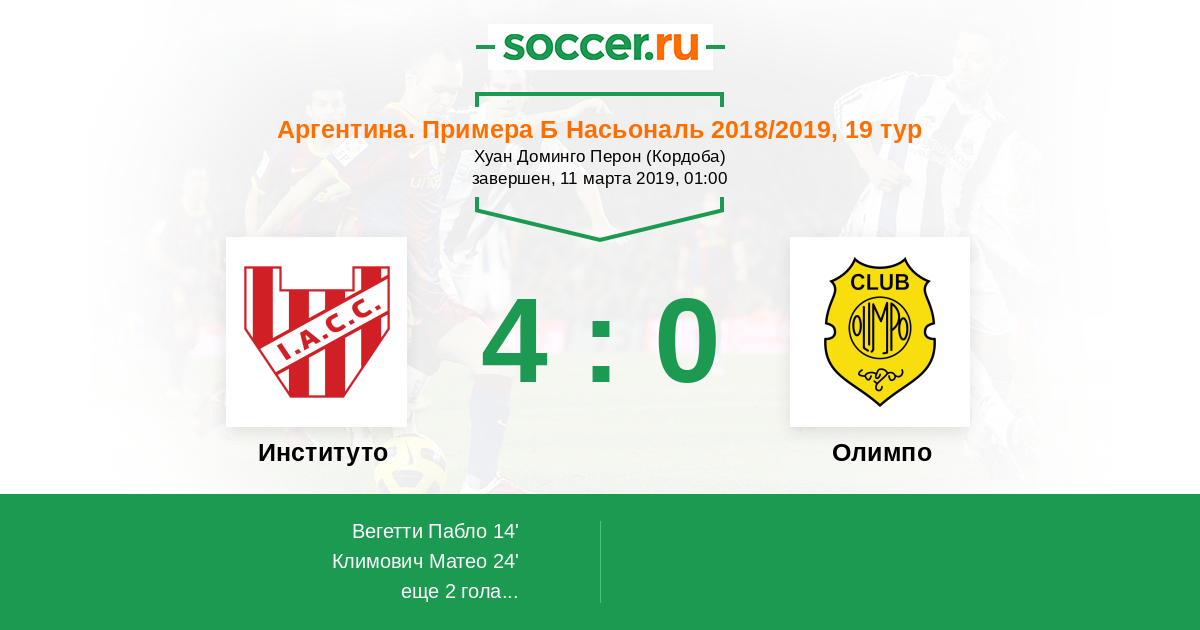 Протокол матча Институто против Олимпо