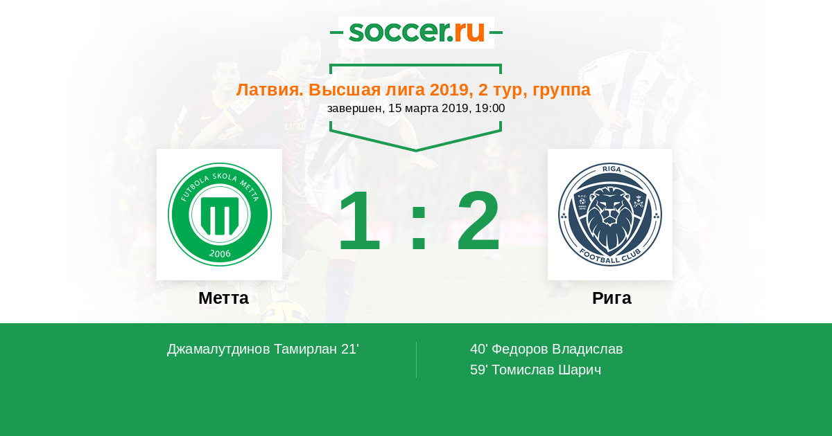 Протокол матча Метта против Рига