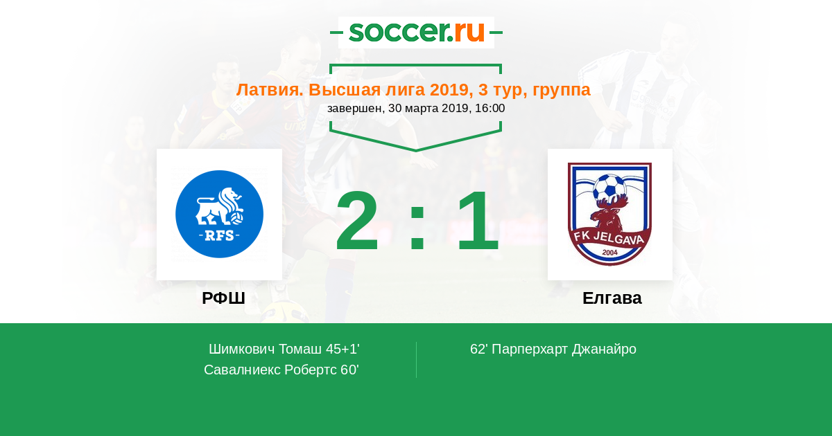 Протокол матча РФШ против Елгава