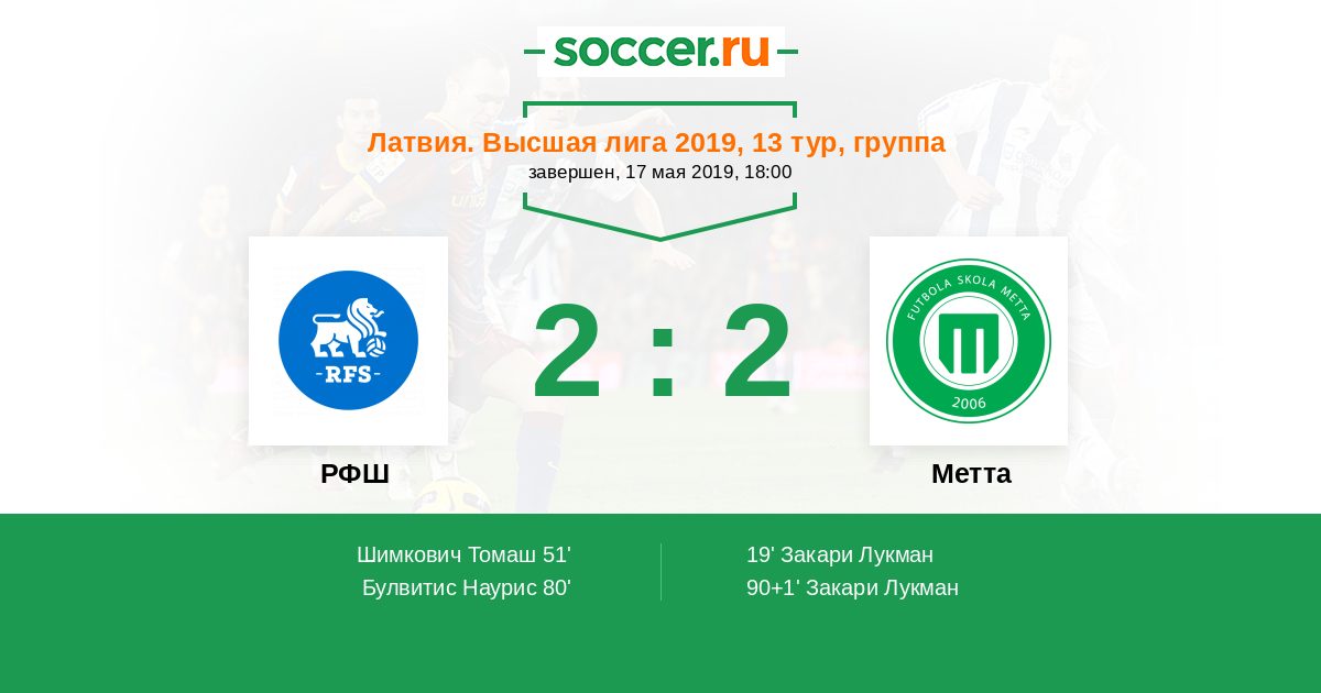 Протокол матча РФШ против Метта