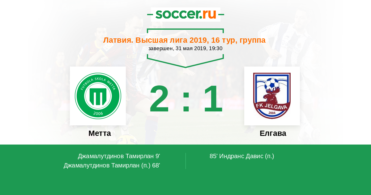 Протокол матча Метта против Елгава