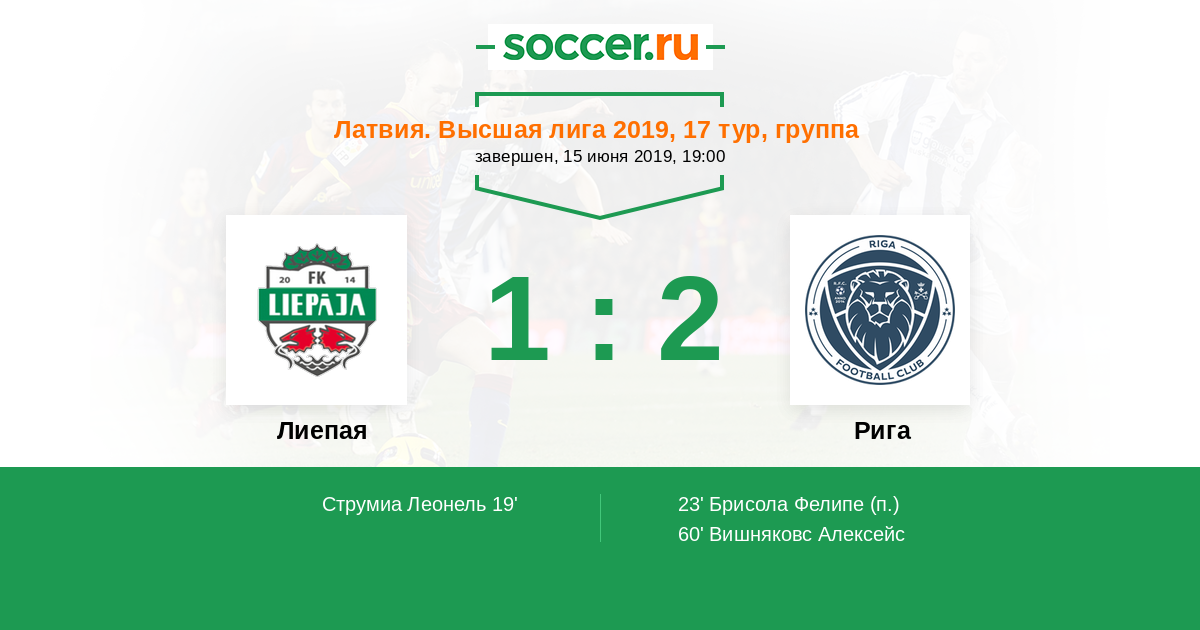Протокол матча Лиепая против Рига