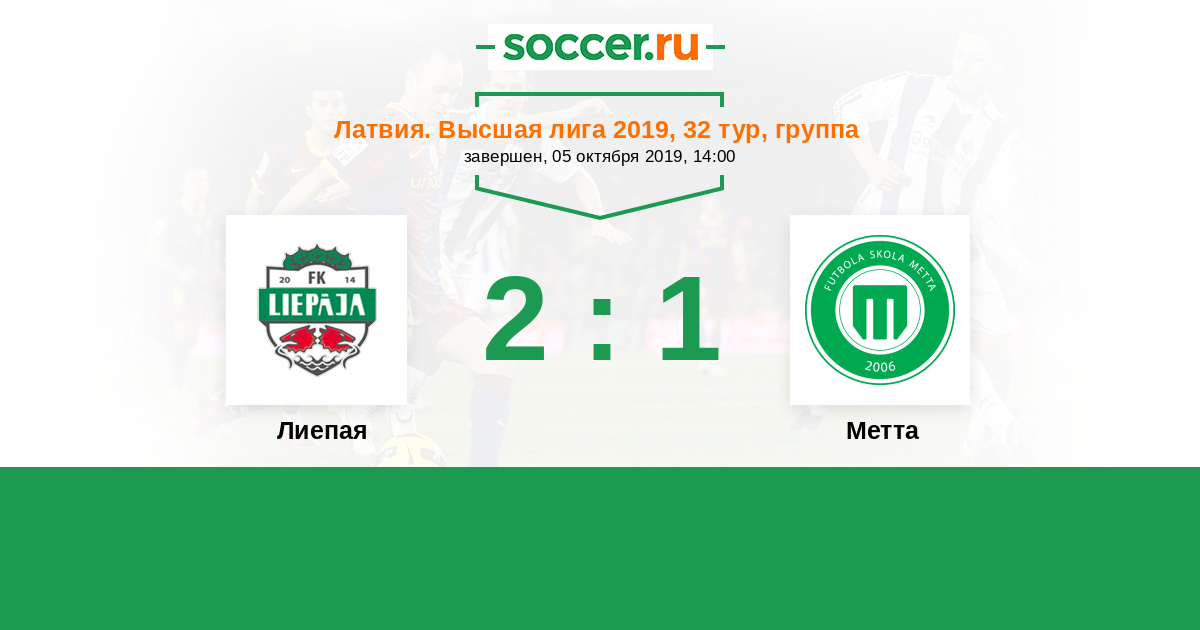Латвия. Высшая лига 28.07.2019 Метта Логотип футбольный клуб Метта (Рига) 2:3 Логотип футбольный клуб Лиепая Лиепая