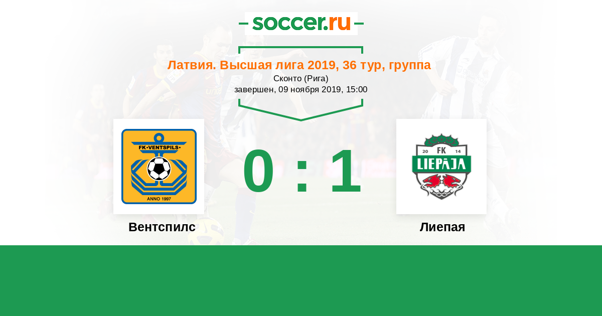 Латвия. Высшая лига 07.10.2018 Лиепая Логотип футбольный клуб Лиепая 0:1 Логотип футбольный клуб Вентспилс Вентспилс