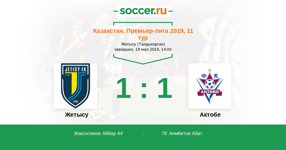Протокол матча Жетысу против Актобе