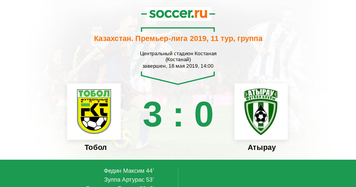 Протокол матча Тобол против Атырау