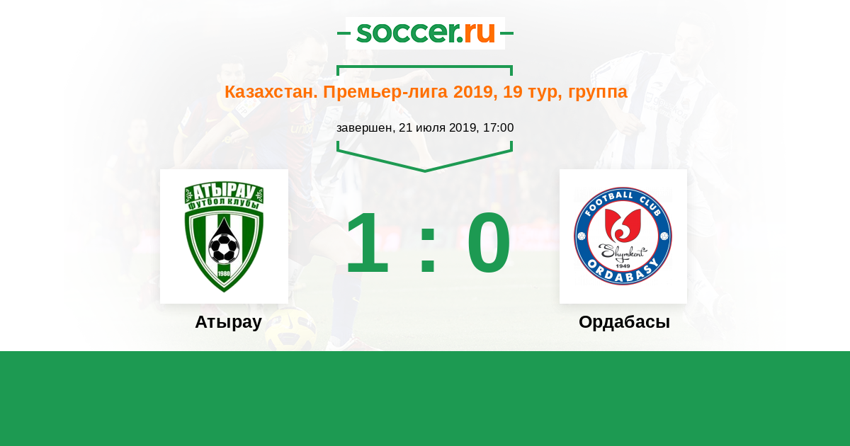 Казахстан. Премьер-лига 20.08.2017 Ордабасы Логотип футбольный клуб Ордабасы (Шымкент) 2:0 Логотип футбольный клуб Атырау Атырау