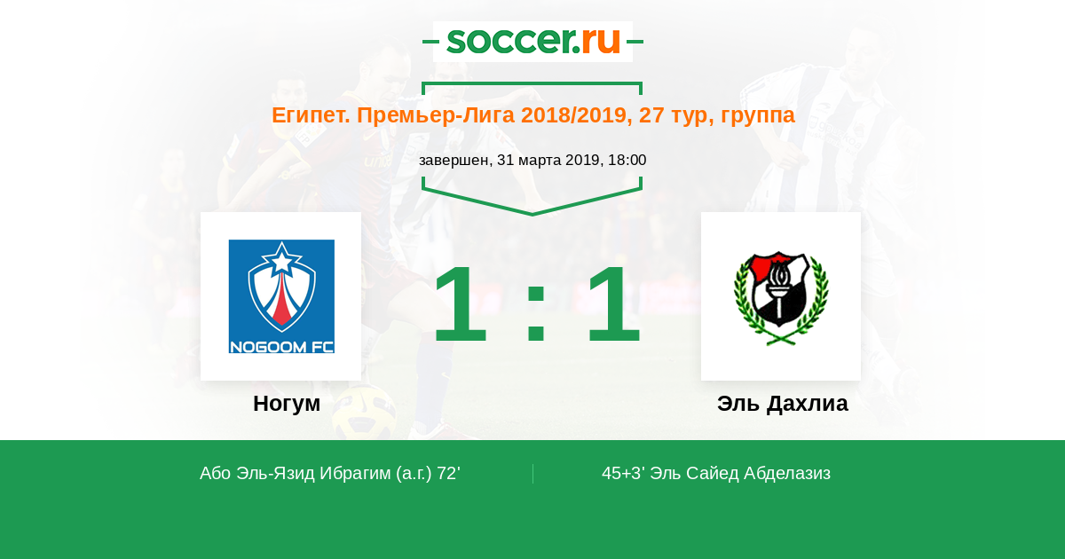 72' (1:1) Автогол Або Эль-Язид Ибрагим