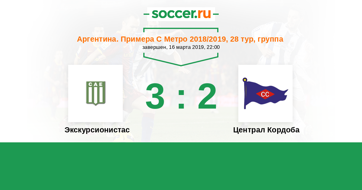Аргентина. Примера С Метро 09.11.2019 Централ Кордоба Логотип футбольный клуб Централ Кордоба 2:2 Логотип футбольный клуб Экскурсионистас (Буэнос-Айрес) Экскурсионистас