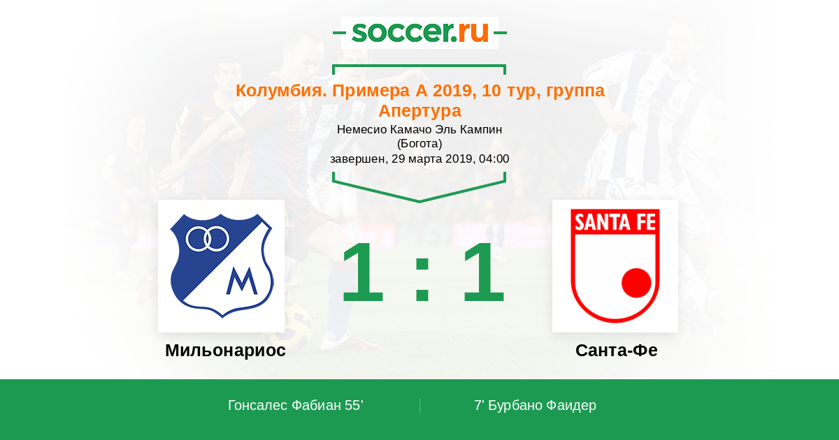 Протокол матча Мильонариос против Санта-Фе