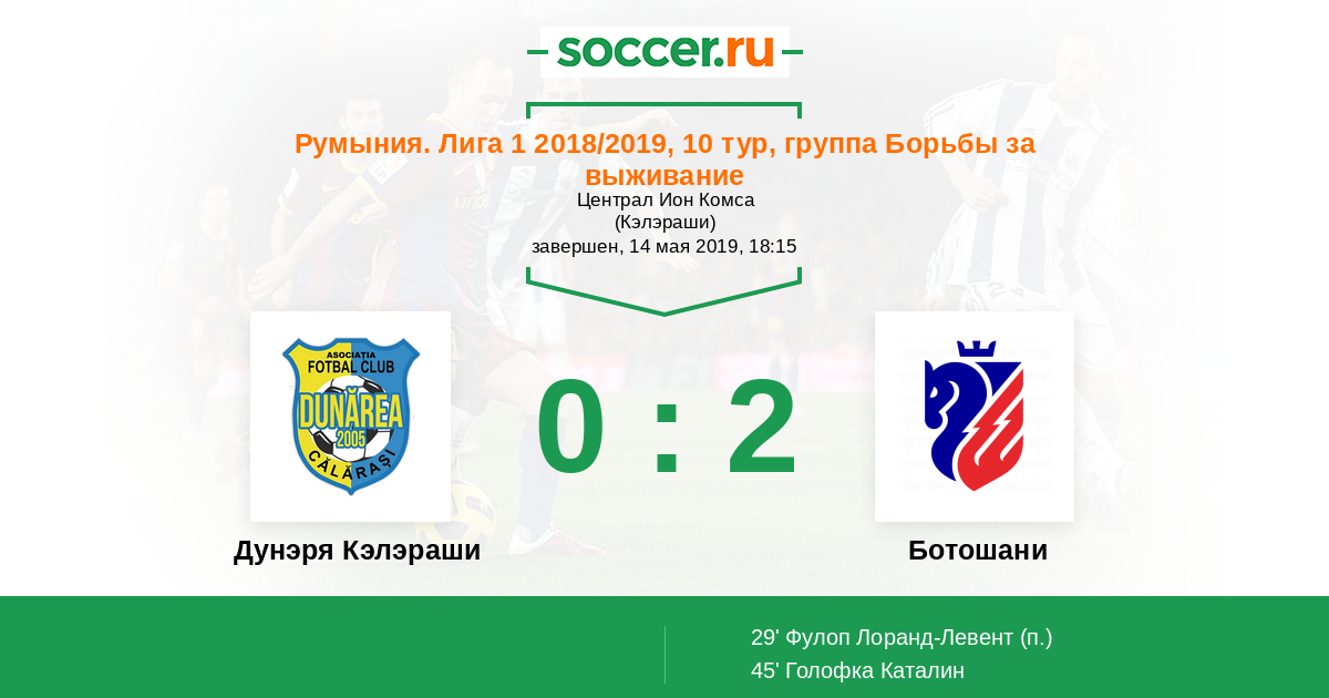 Протокол матча Дунэря Кэлэраши против Ботошани