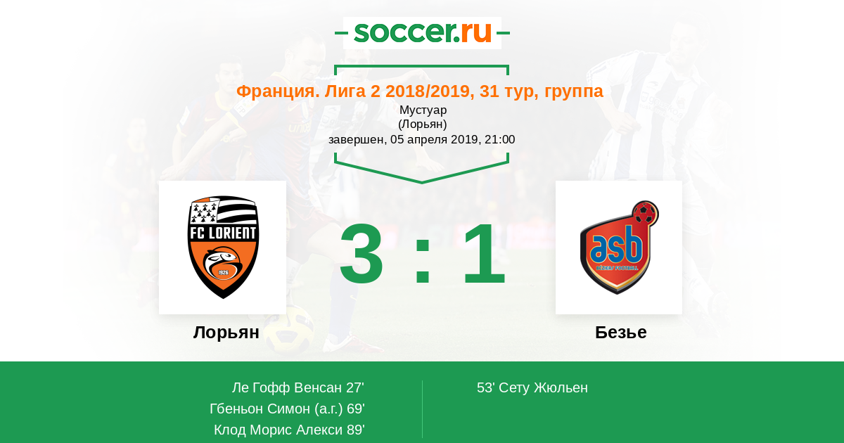89' (3:1) Клод Морис Алекси (10) (Понсо Жульен (37))