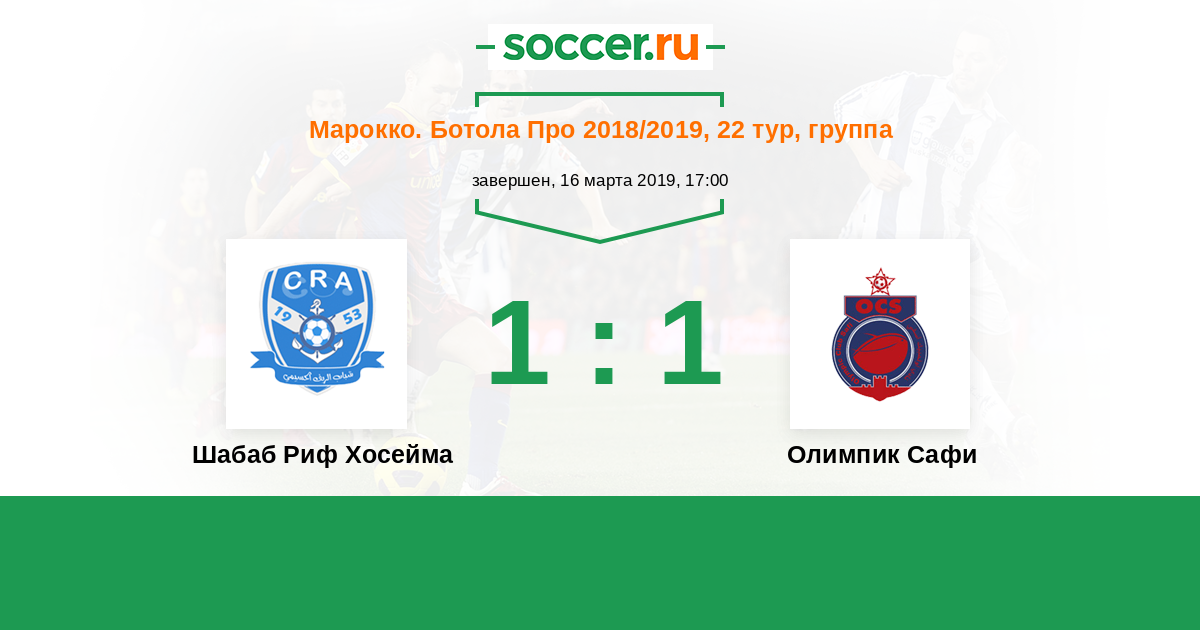 История матча Шабаб Риф Хосейма против Олимпик Сафи