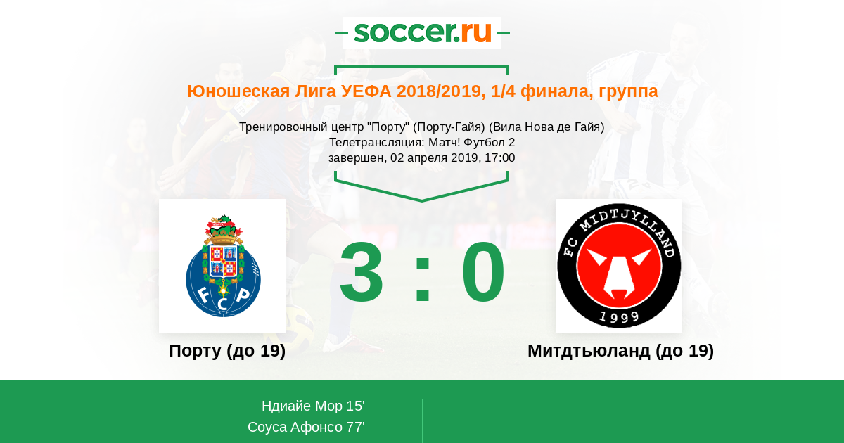 Протокол матча Порту (до 19) против Митдтьюланд (до 19)