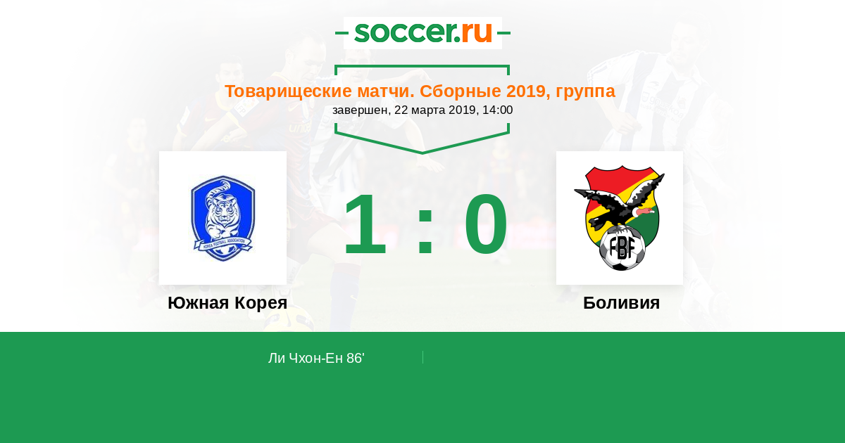 Протокол матча Южная Корея против Боливия