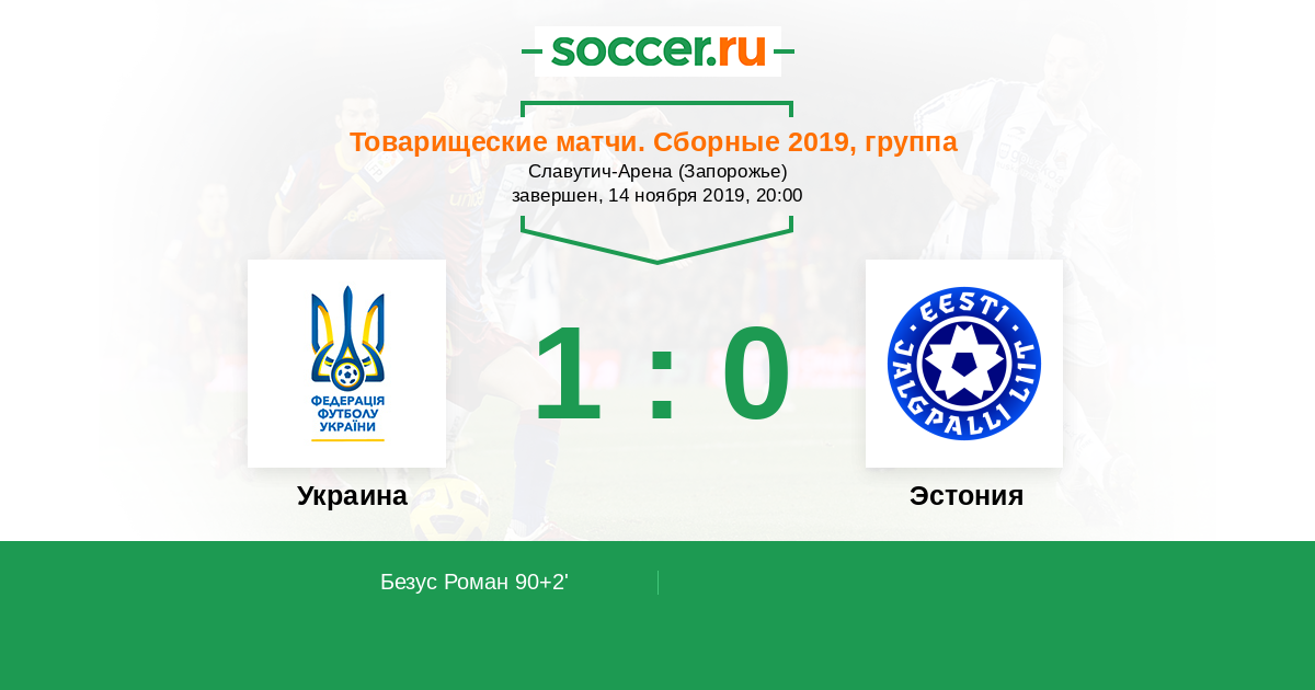 Протокол матча Украина против Эстония
