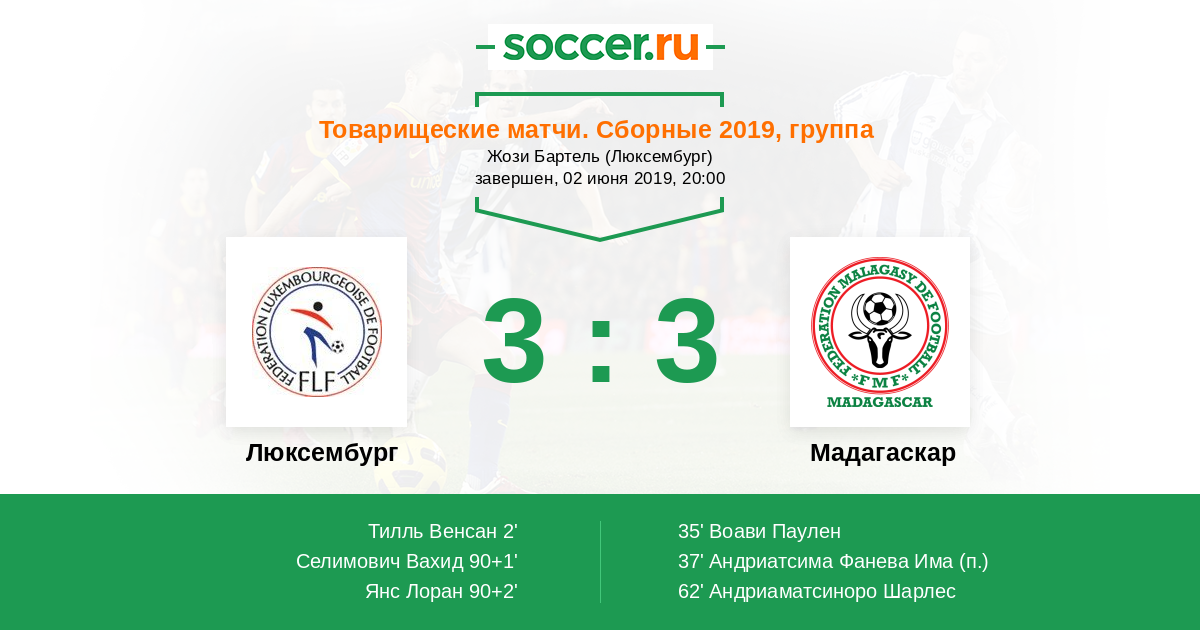 Протокол матча Люксембург против Мадагаскар
