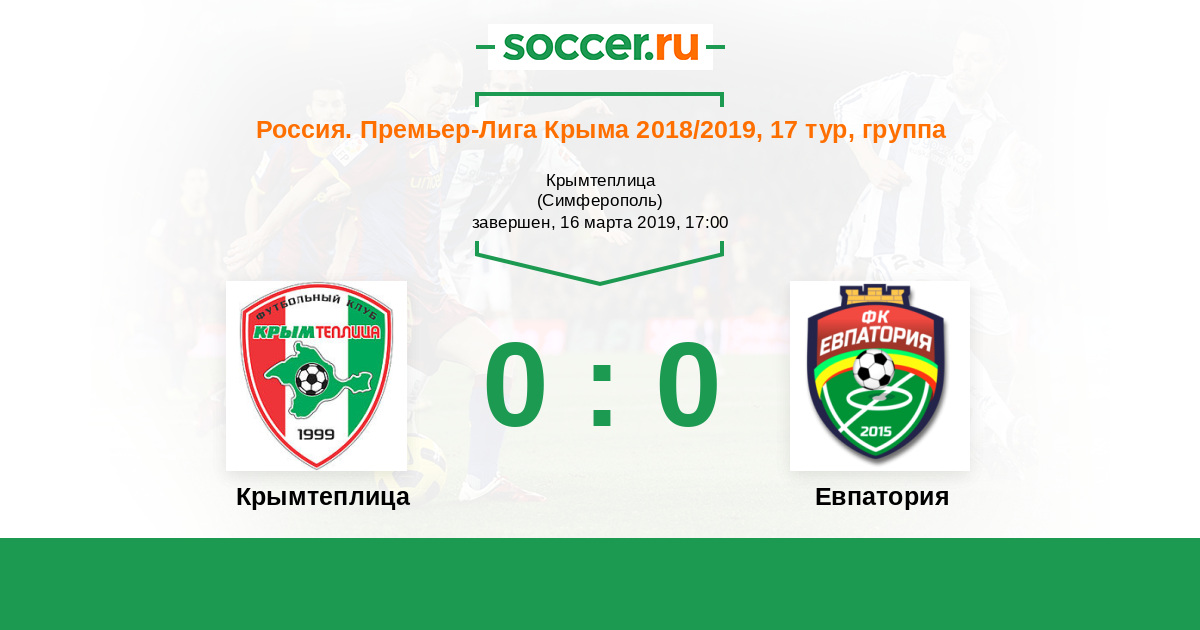 Россия. Премьер-Лига Крыма 14.03.2018 Евпатория Логотип футбольный клуб Евпатория 0:1 Логотип футбольный клуб Крымтеплица (Молодежное) Крымтеплица