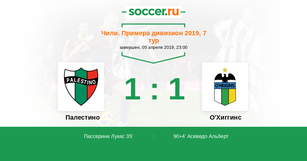 Протокол матча Палестино против О'Хиггинс