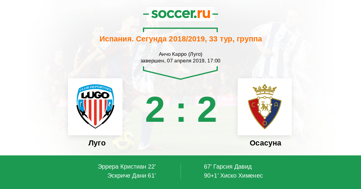 Протокол матча Луго против Осасуна