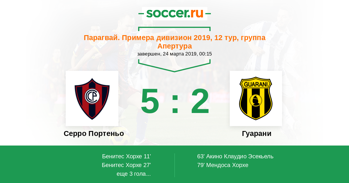 Протокол матча Серро Портеньо против Гуарани
