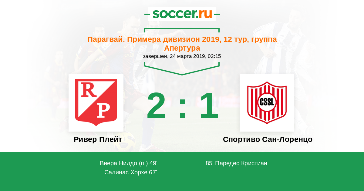 Протокол матча Ривер Плейт против Спортиво Сан-Лоренцо