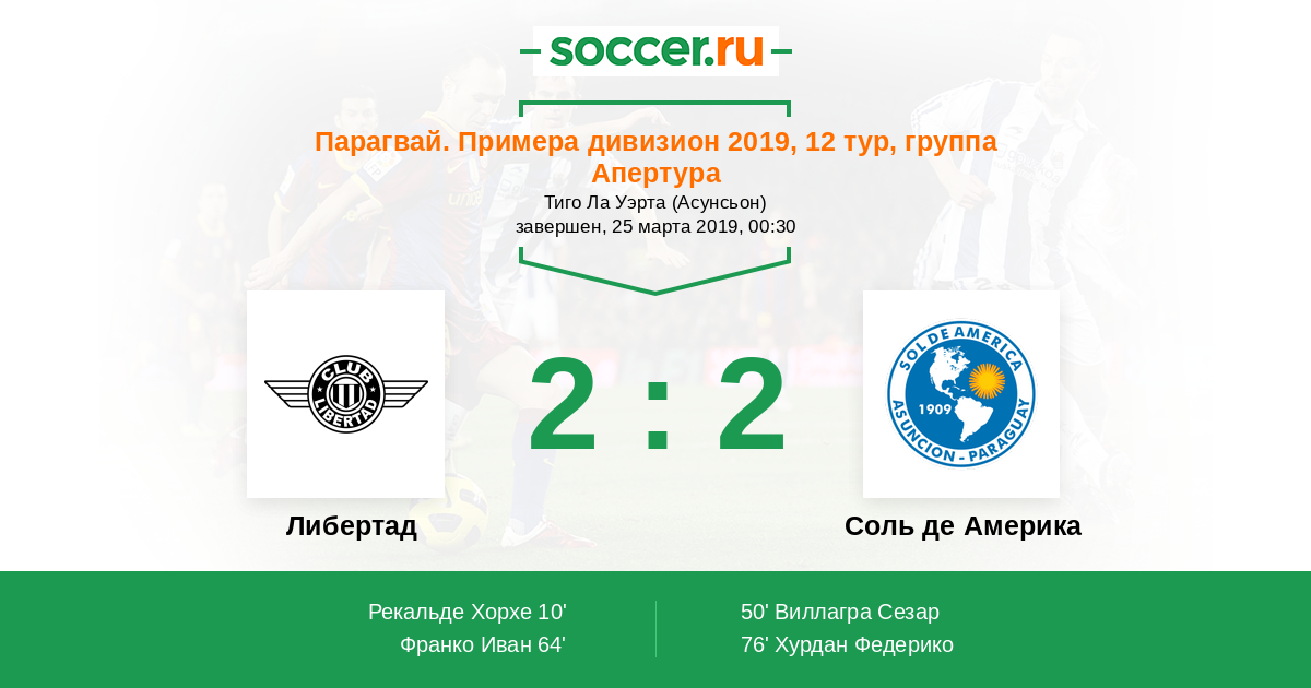 Протокол матча Либертад против Соль де Америка