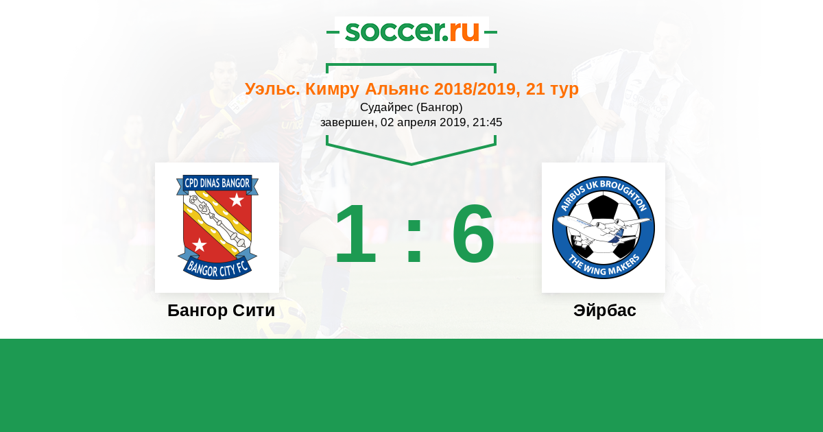 Уэльс. Премьер-Лига 25.02.2014 Бангор Сити Логотип футбольный клуб Бангор Сити 2:4 Логотип футбольный клуб Эйрбас (Броугтон) Эйрбас