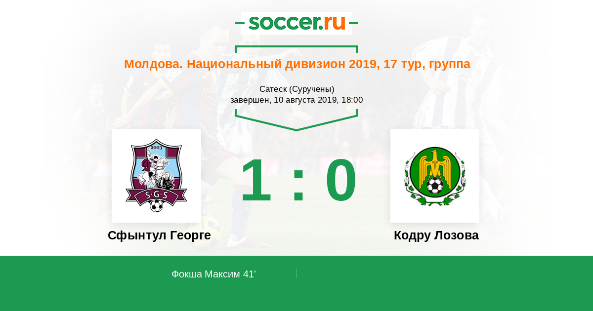 Протокол матча Сфынтул Георге против Кодру Лозова