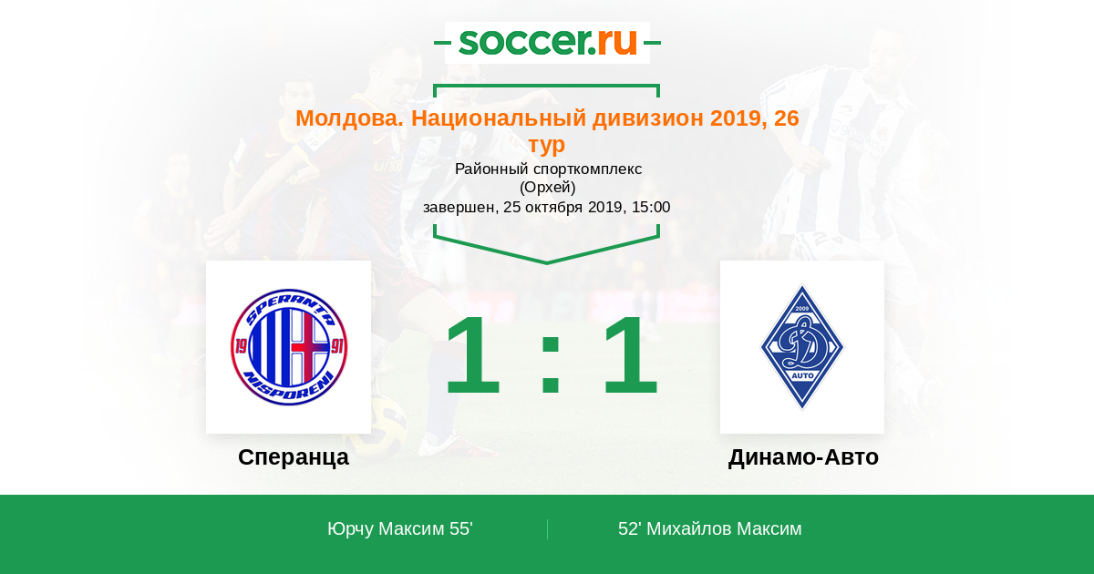 Протокол матча Сперанца против Динамо-Авто