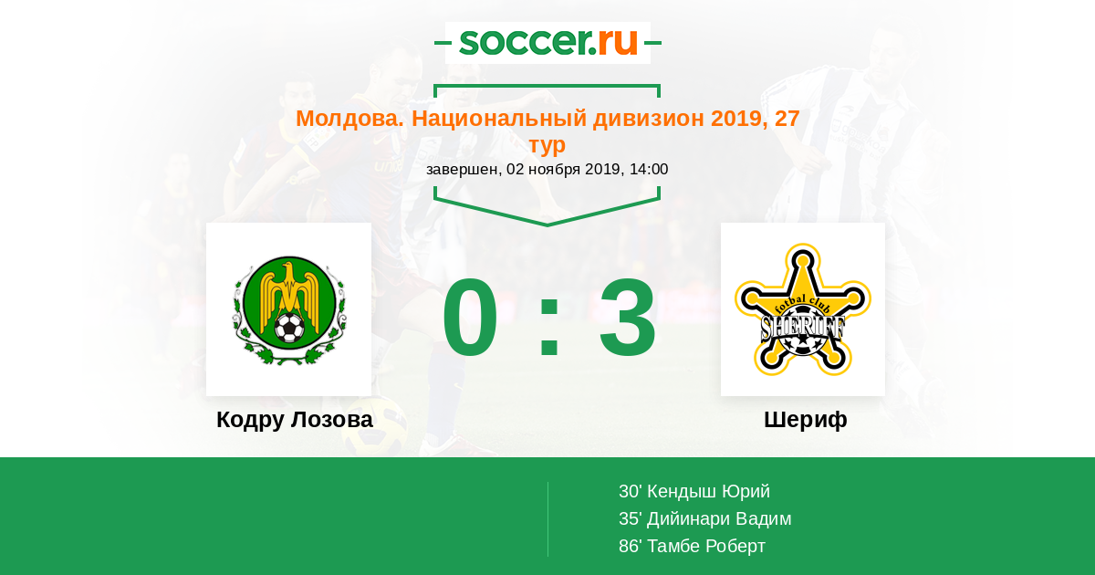 Протокол матча Кодру Лозова против Шериф