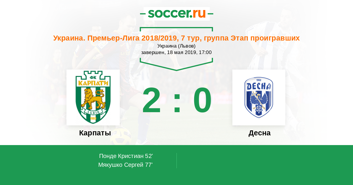 Протокол матча Карпаты против Десна