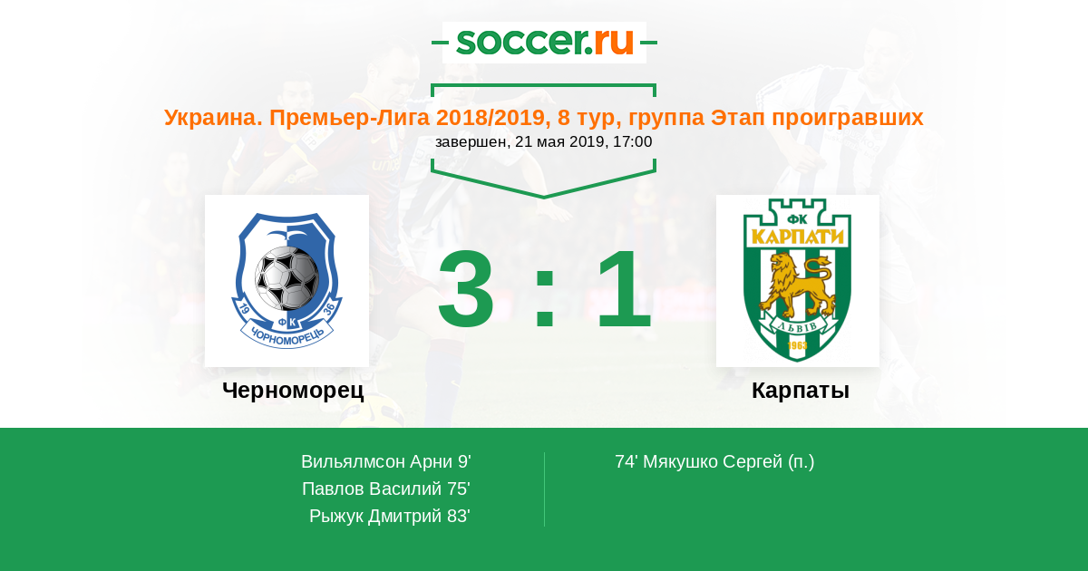 Протокол матча Черноморец против Карпаты