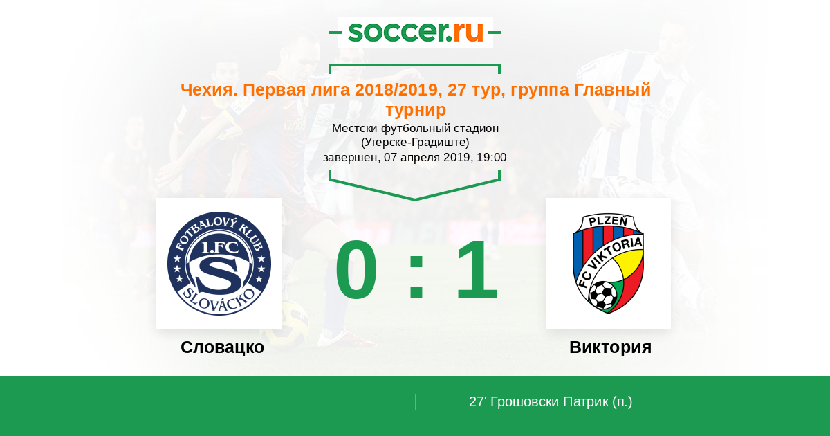 Протокол матча Словацко против Виктория