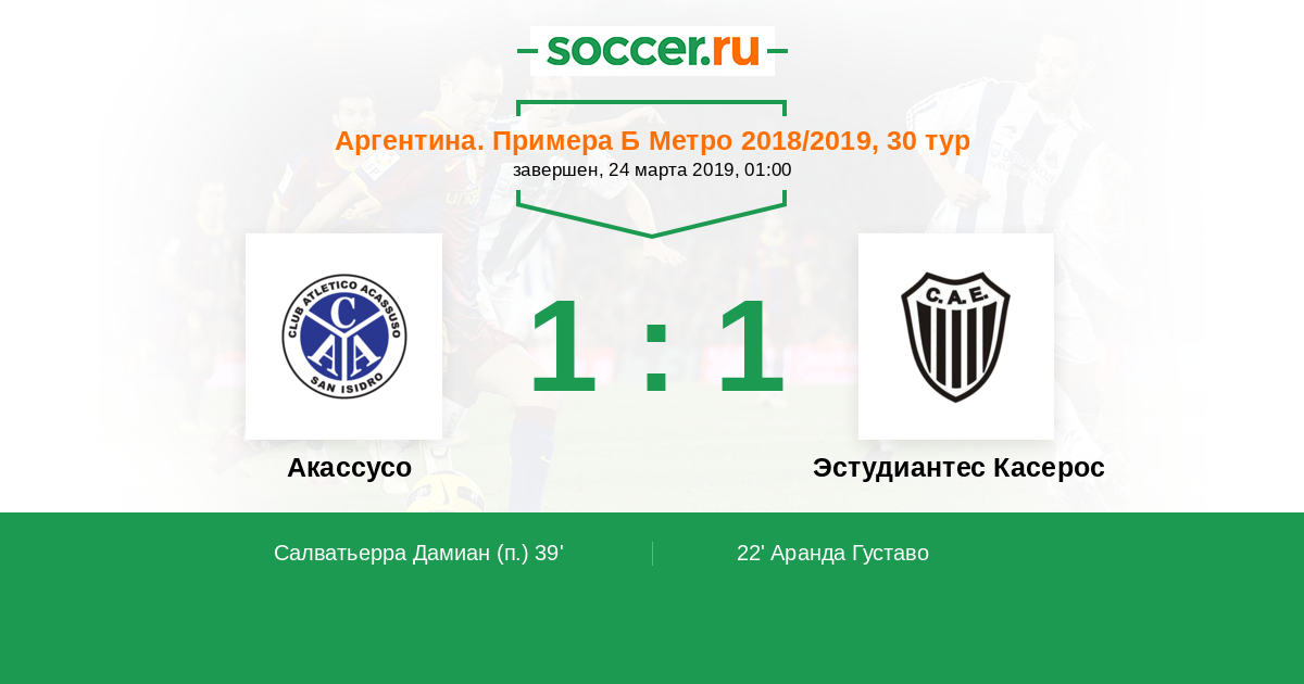 Протокол матча Акассусо против Эстудиантес Касерос