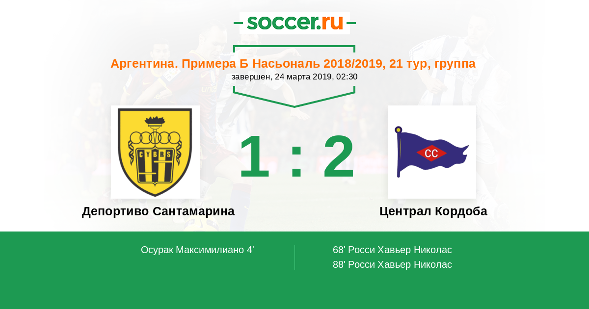 Протокол матча Депортиво Сантамарина против Централ Кордоба