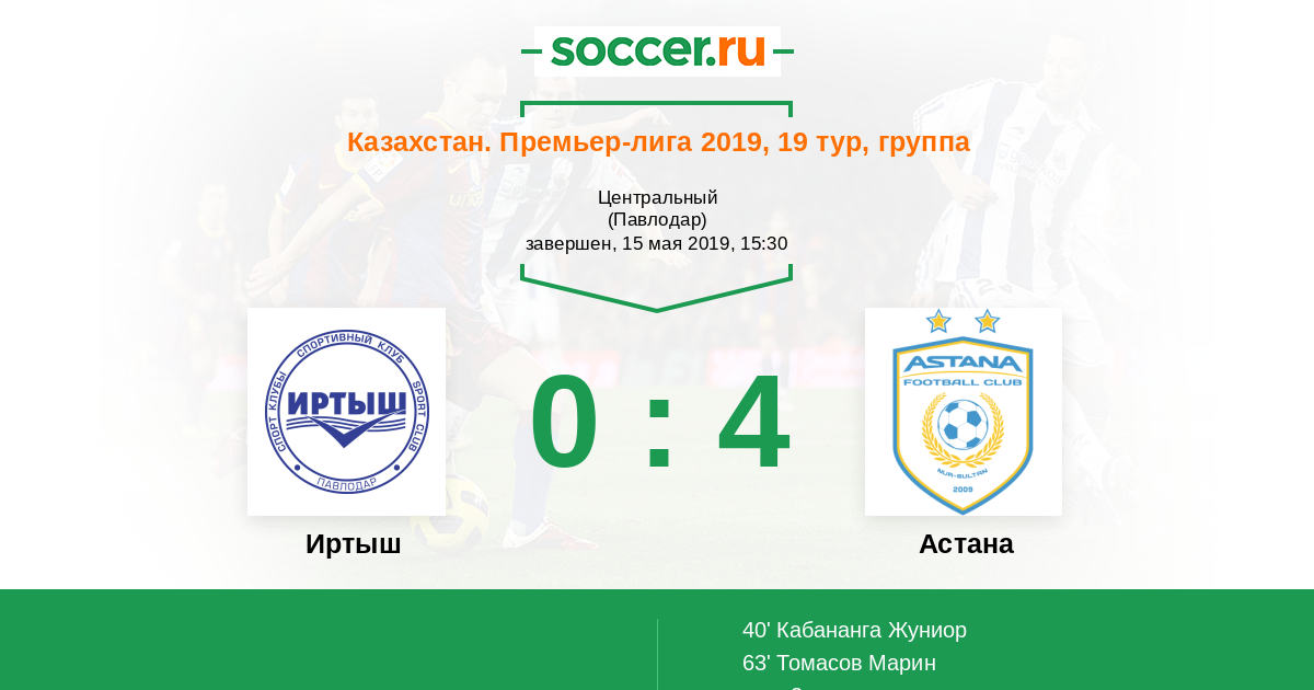 Протокол матча Иртыш против Астана