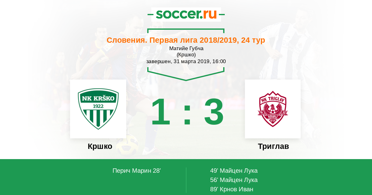 Протокол матча Кршко против Триглав