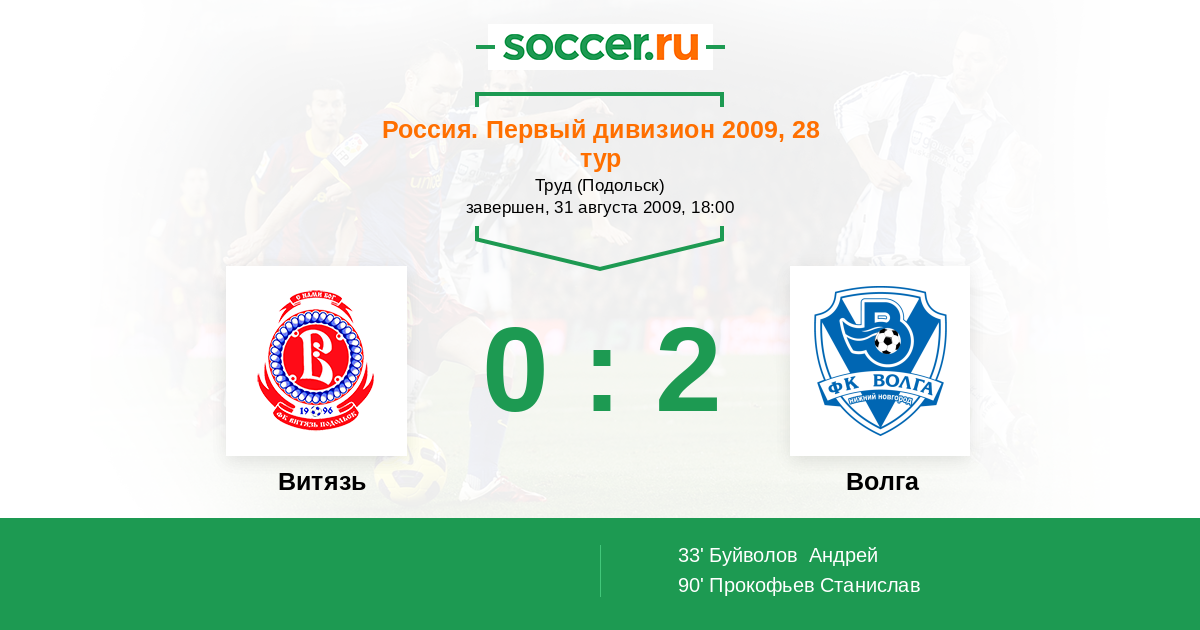 Протокол матча Витязь против Волга