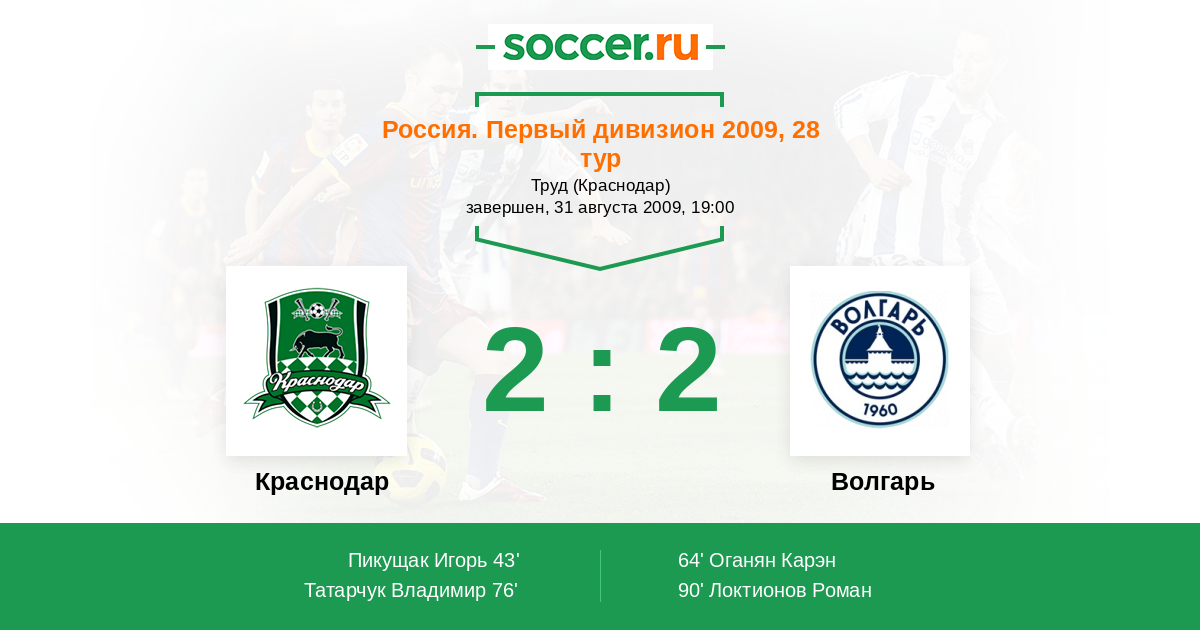 Протокол матча Краснодар против Волгарь-Газпром-2