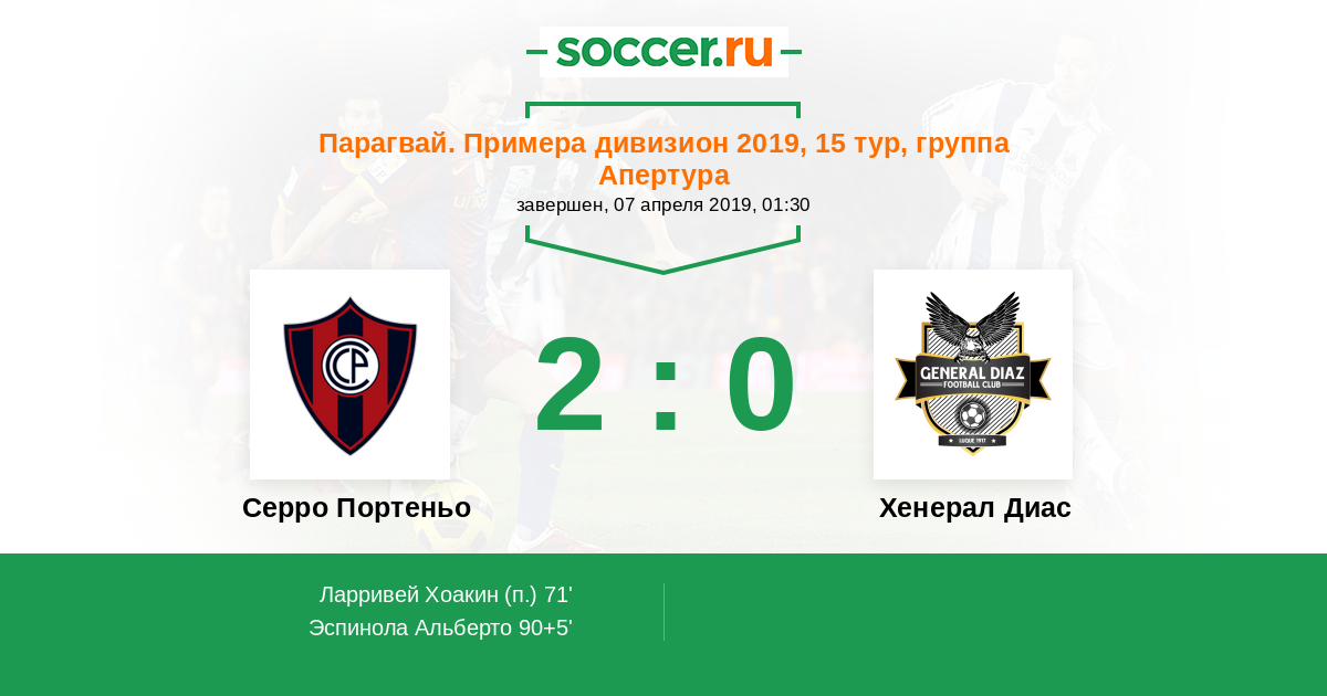 Протокол матча Серро Портеньо против Хенерал Диас