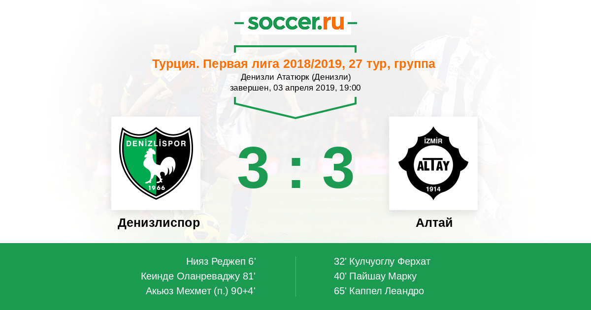 6' (1:0) Нияз Реджеп (20) (Акуюз Керем (39))