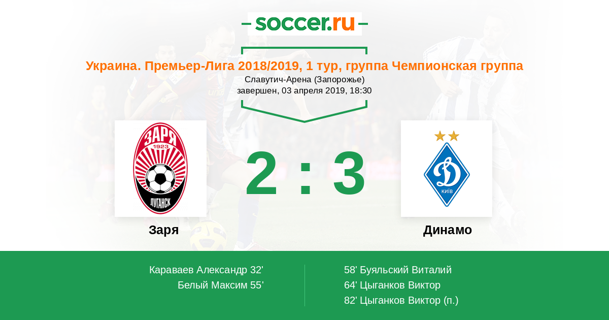 Протокол матча Заря против Динамо