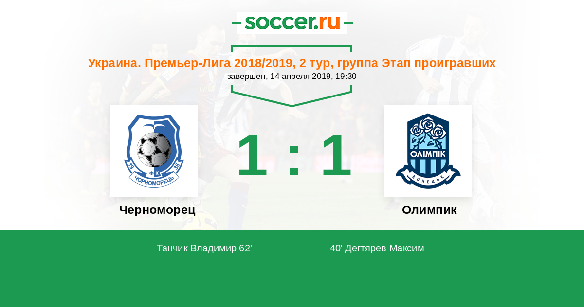 Протокол матча Черноморец против Олимпик