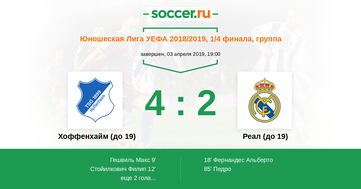 Протокол матча Хоффенхайм (до 19) против Реал (до 19)