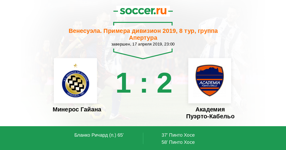 Протокол матча Минерос Гайана против Пуэрто-Кабельо