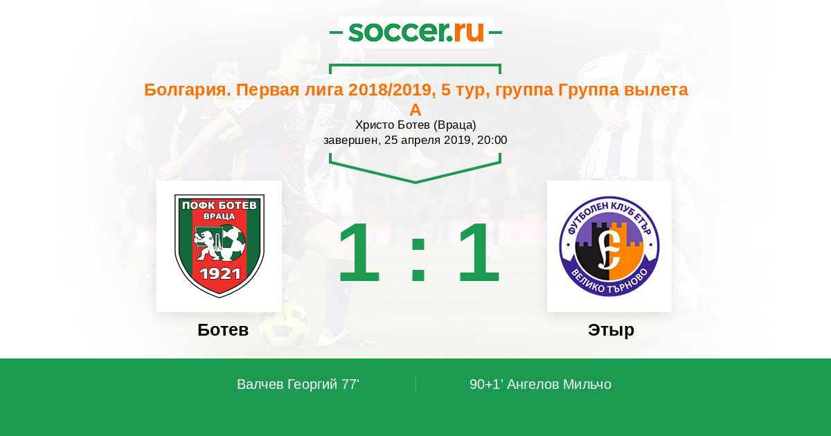 Протокол матча Ботев против Этыр