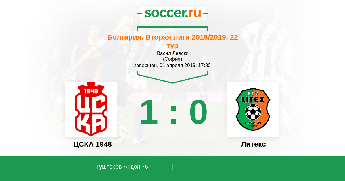 Протокол матча ЦСКА 1948 против Литекс